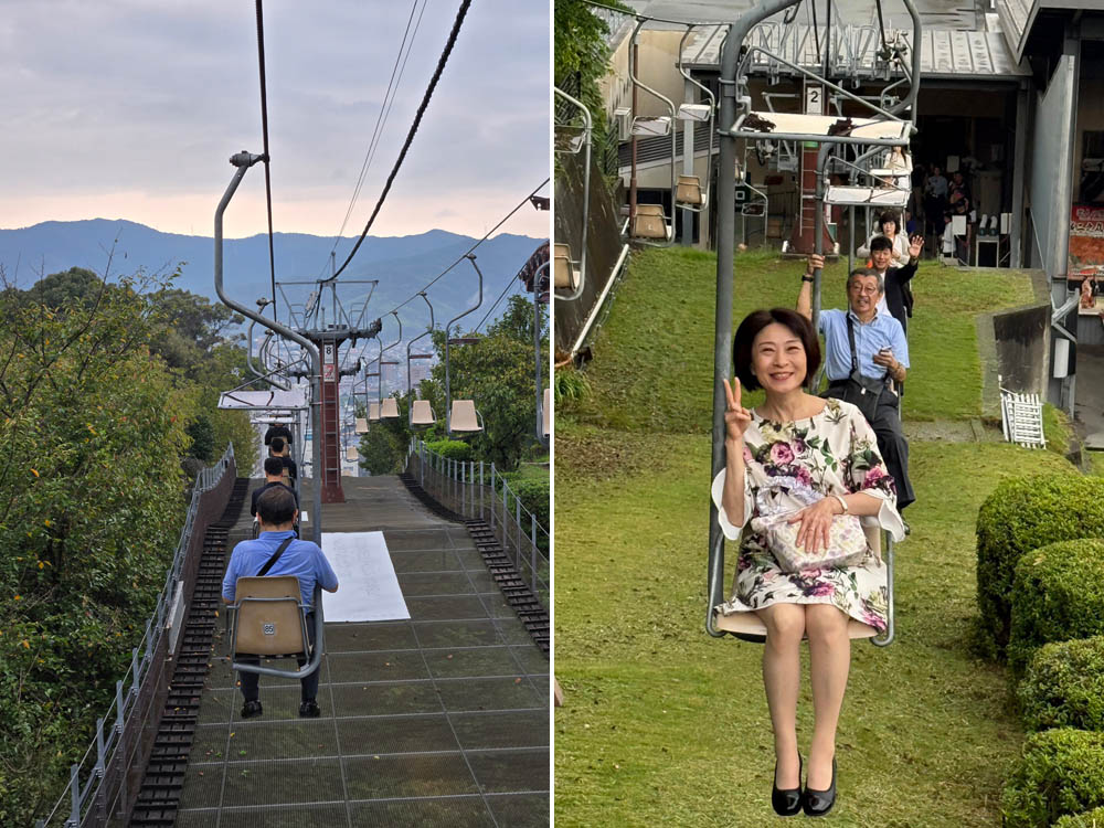 降っていた小雨もやんで開通したリフトにちょうど乗れました。晴男の濱崎社長、本領発揮です。