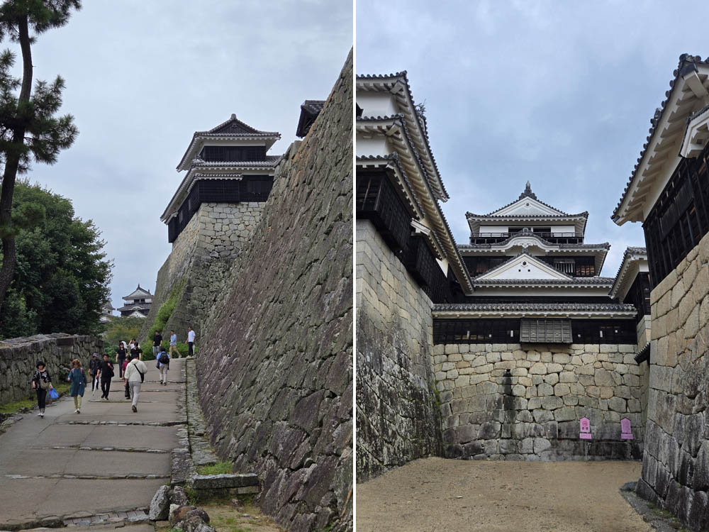 石垣も素晴らしく、この「登り石垣」は松山城と彦根城にしか残っていない珍しい石垣で、山の斜面を利用した防御構造となっているそうです。